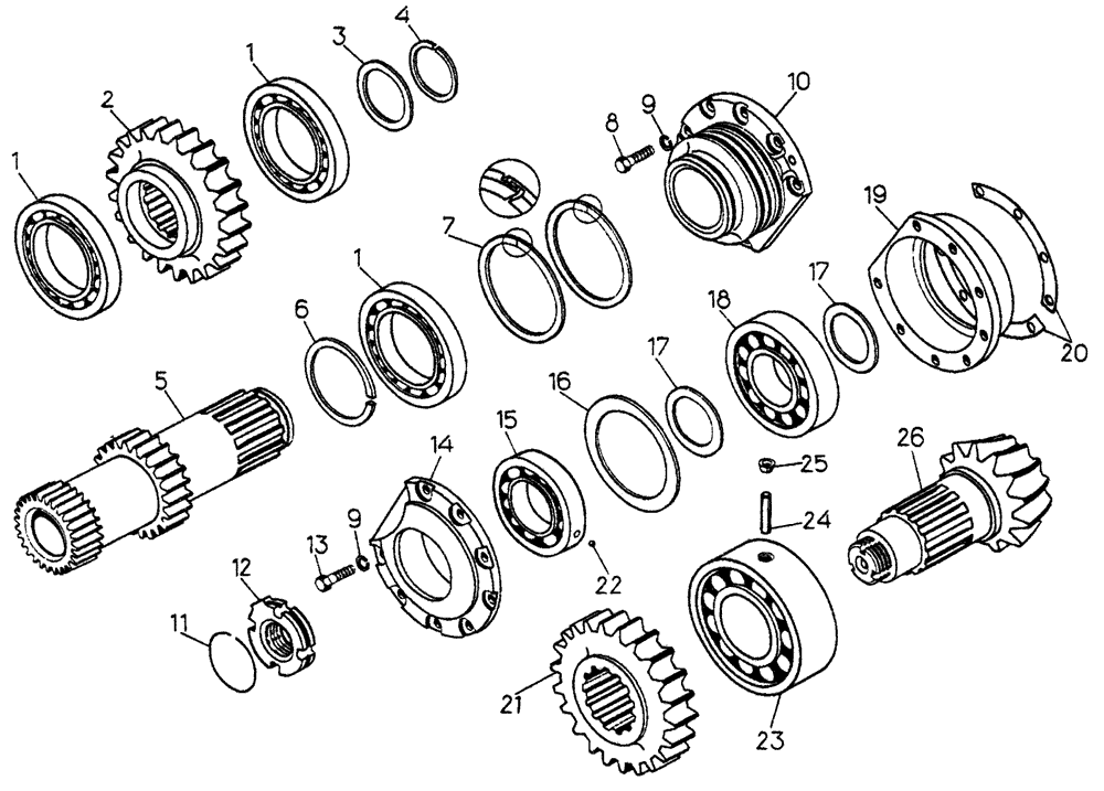 Вал-шестерня с деталями