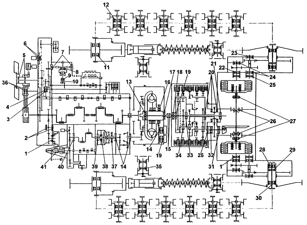 Схема расположения подшипников на тракторе с гидромеханической трансмиссией