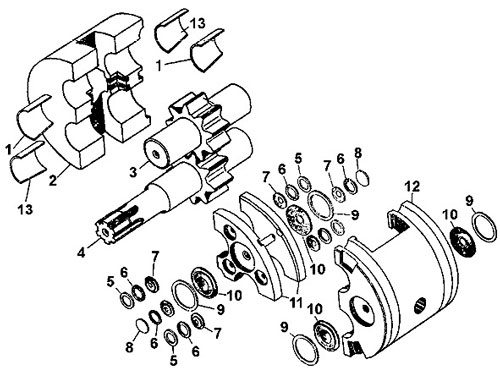 Детали насоса шестерённого НШ-100А-3Л на Т-170