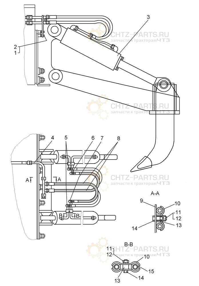 Установка гидроцилиндров на рыхлитель 10Н2 для Б10М