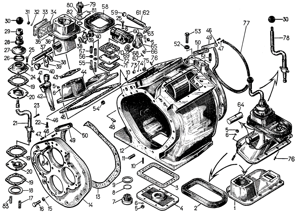 Корпус коробки передач с крышками и механизм переключения передач на Т-130