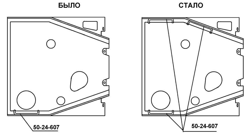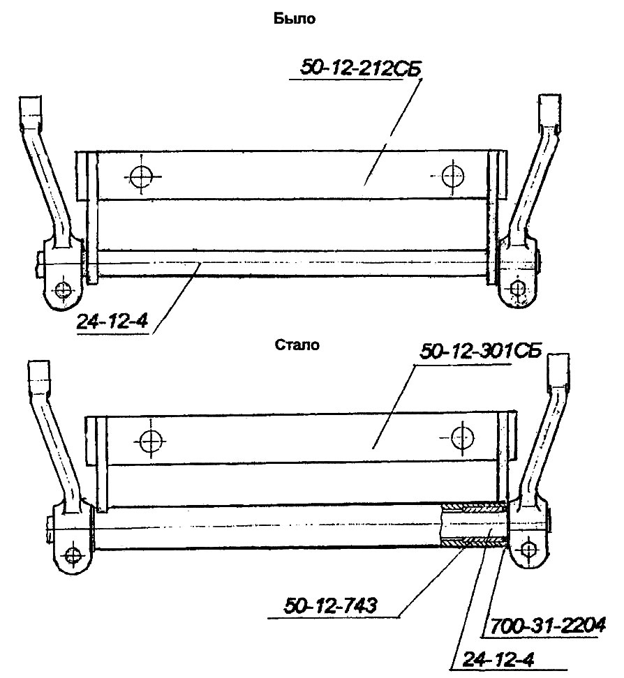 С целью устранения течи из гидробаков усилены сварные швы в районе приварки стяжной трубы, на привариваемых накладках введена разделка кромок под сварку.
