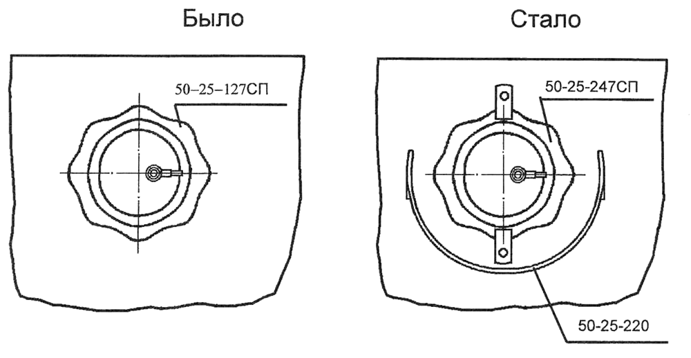 Для удобства обслуживания пробка 65-01-98 маслозаливной горловины двигателя заменена пробкой 65-01-111СП с проушиной.
