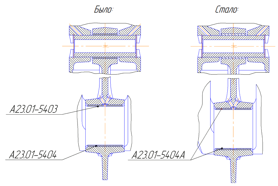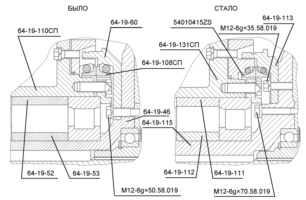 Введены следующие изменения сопрягаемых деталей и сборочных единиц: