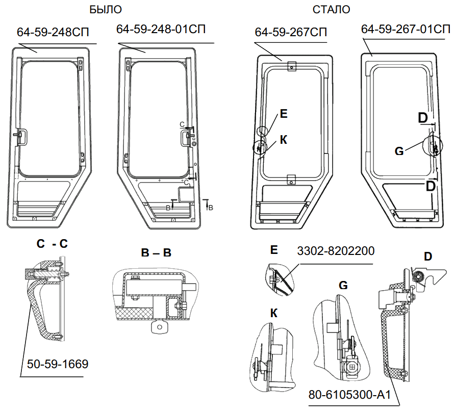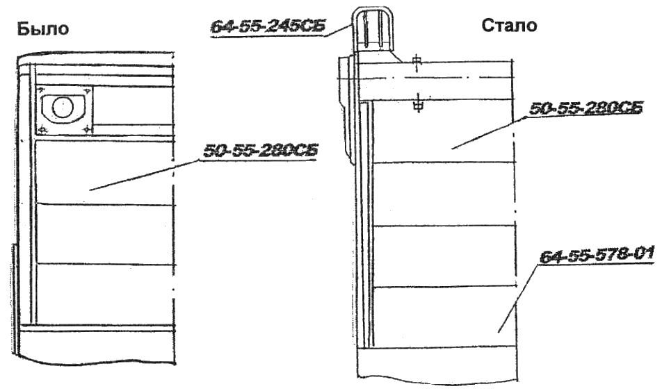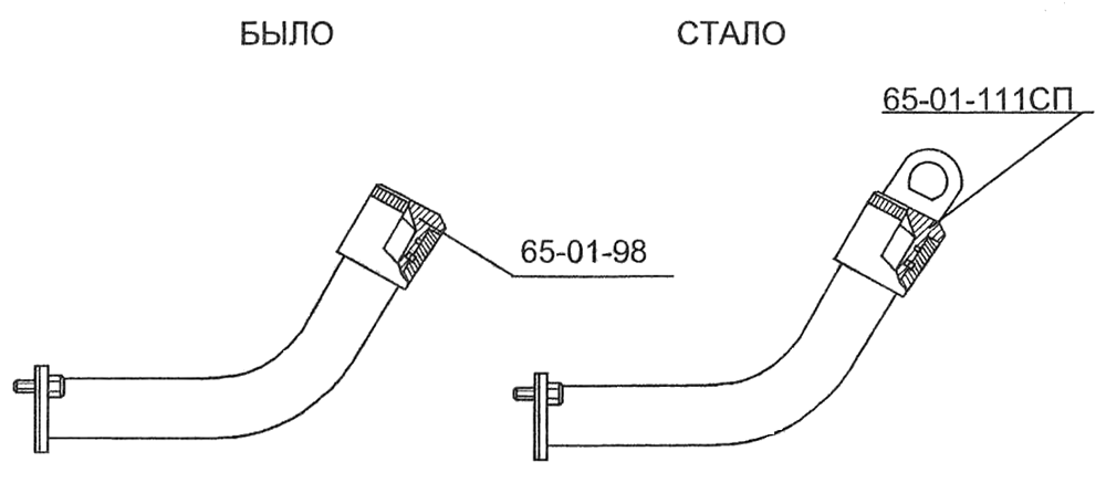 С целью улучшения условий обслуживания место соединения труб и рукавов управления гидроперекосом отвала перенесено в более доступное для обслуживания. При этом трубы 64-82-319СП и 64-82-319-01СП заменены укороченными трубами 64-82-320СП, рукава 50-26-485-06СП заменены рукавами 50-26-485-10СП.