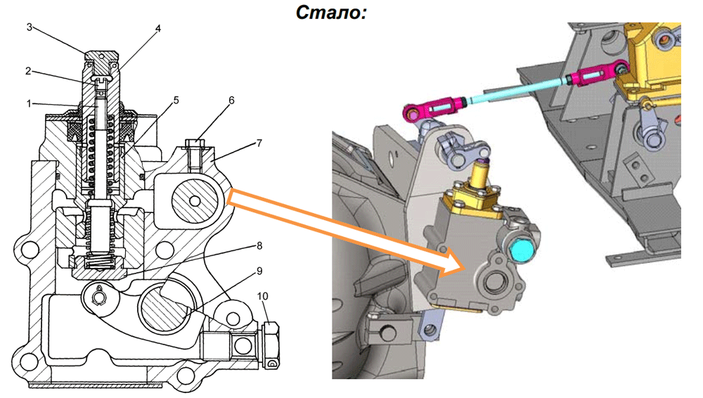 С целью повышения надежности уплотнения кожаный сальник 40967СП в корпусе регулятора заменен резиновой армированной манжетой 1.2-15x30-1 ГОСТ 8752-79 с изменением посадочного размера в корпусе.