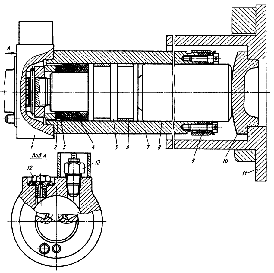 Хвостовики оси входят в отверстия внутренней и наружной опор 2. Фиксация оси в опорах осуществляется стопором 14.